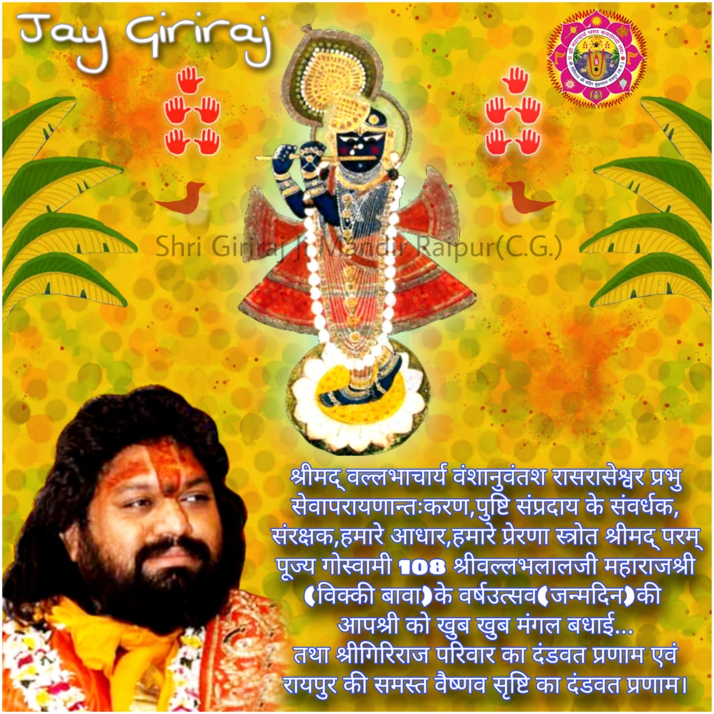 हरिदास वर्य श्री गिरिराज गोवर्धनाय नम:।