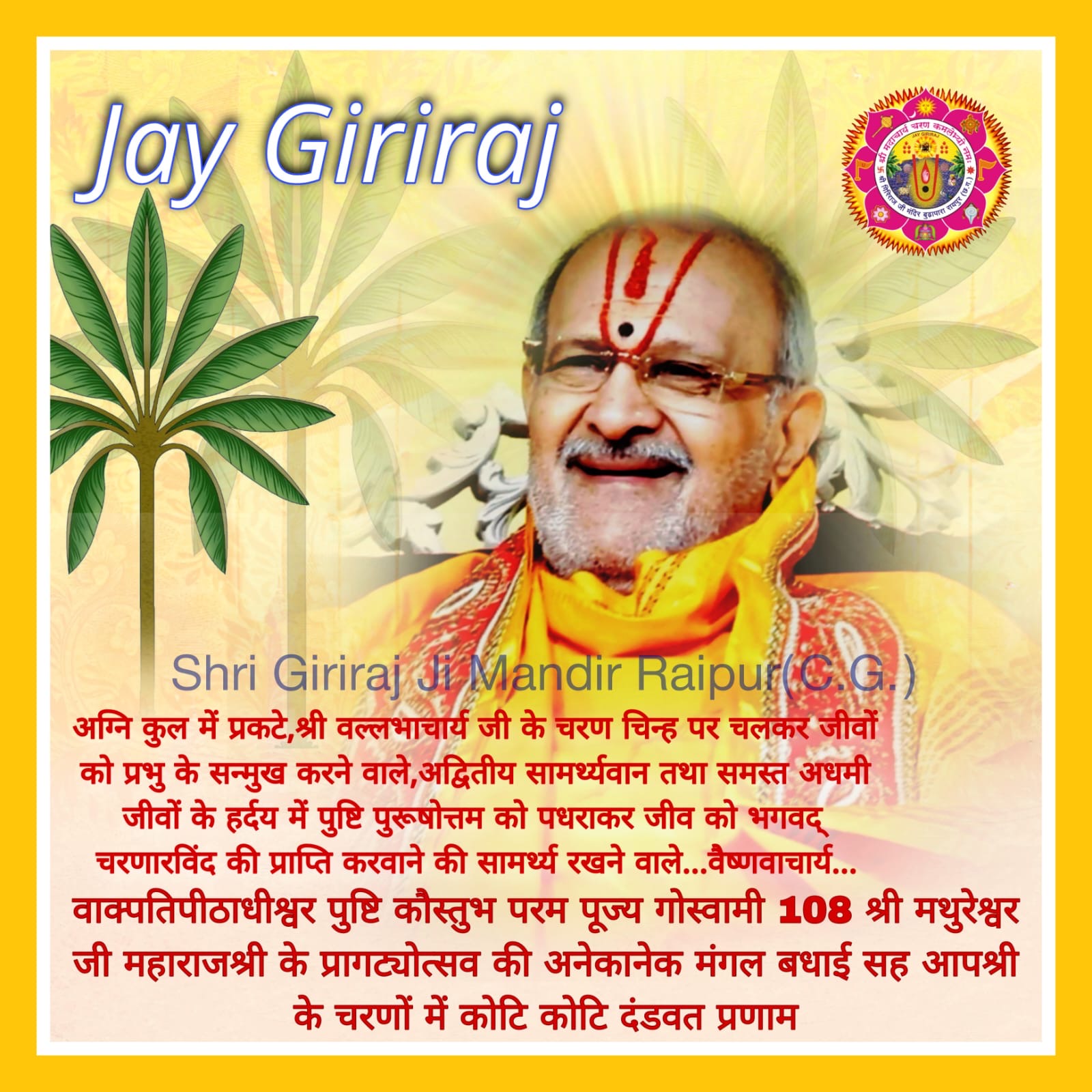 हरिदास वर्य श्री गिरिराज गोवर्धनाय नम:।